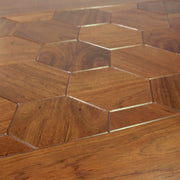 El comedor Navarone es una pieza que impone presencia desde el primer vistazo, combinando la calidez de la madera con un diseño que equilibra lo tradicional y lo contemporáneo de forma impecable. Su mesa destaca por una cubierta con patrón de hexágonos que aporta profundidad visual y carácter, suavizada por un canto boleado que refuerza su elegancia y sofisticación al tacto.